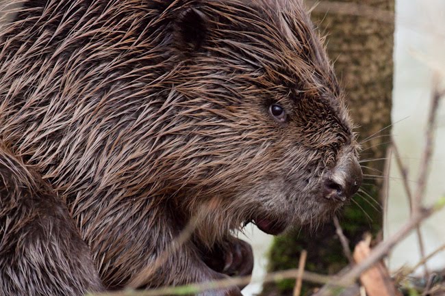 In mijn vorige blog refereerde ik aan de bevers van de Blauwe Kamer. Al zo’n tien jaar bevindt deze soort zich in het gebied, maar zichtbaar waren ze zelden. Met het hoge water van januari verdwenen ook de burchten onder water en waren ze aangewezen op de weinige droge delen. Drie bevers verkozen de berm van de toegangsweg naar de veerpont tot hun tijdelijke domicile. Ondanks hun meestal nachtelijke activiteit staan bevers niet bekend als erg schuw. Maar dit exemplaar was wel extreem benaderbaar en leek zich niets aan te trekken van de aanwezigheid van mensen. Tot op enkele meters liet hij zich fotograferen en ging stoïcijns door met poetsen of eten. Dat leverde dit portret op. Het is een intiem beeld van een fantastisch knaagdier dat vele eeuwen lang de bosbouwer van rivierbegeleidende bossen was, uitgestorven raakte en nu bezig is zijn oude territorium te heroveren. Een succesverhaal.